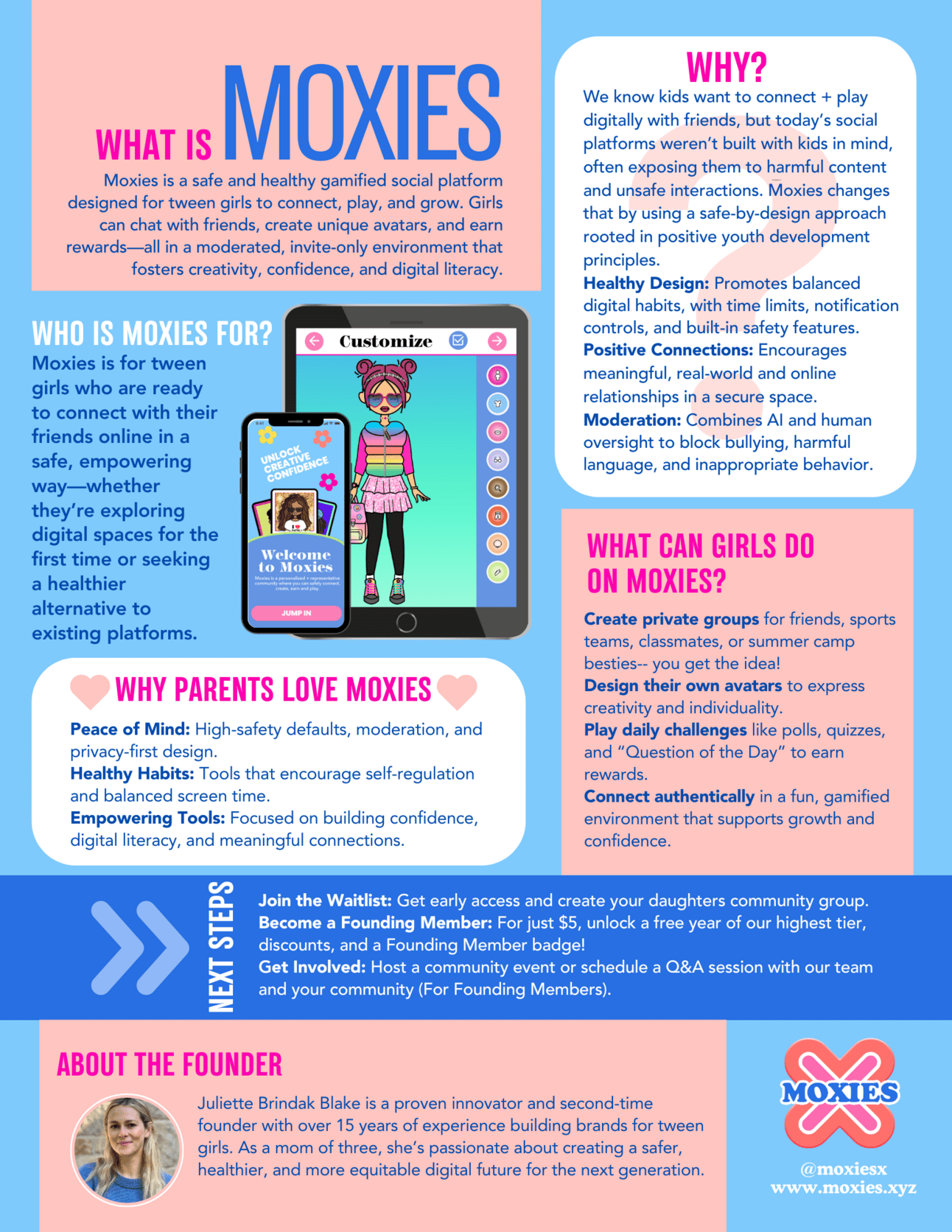 💟 Building Confidence & Connections – Moxies is a gamified social experience built to inspire confidence, digital smarts, and real-world friendships—helping her thrive both online and off!